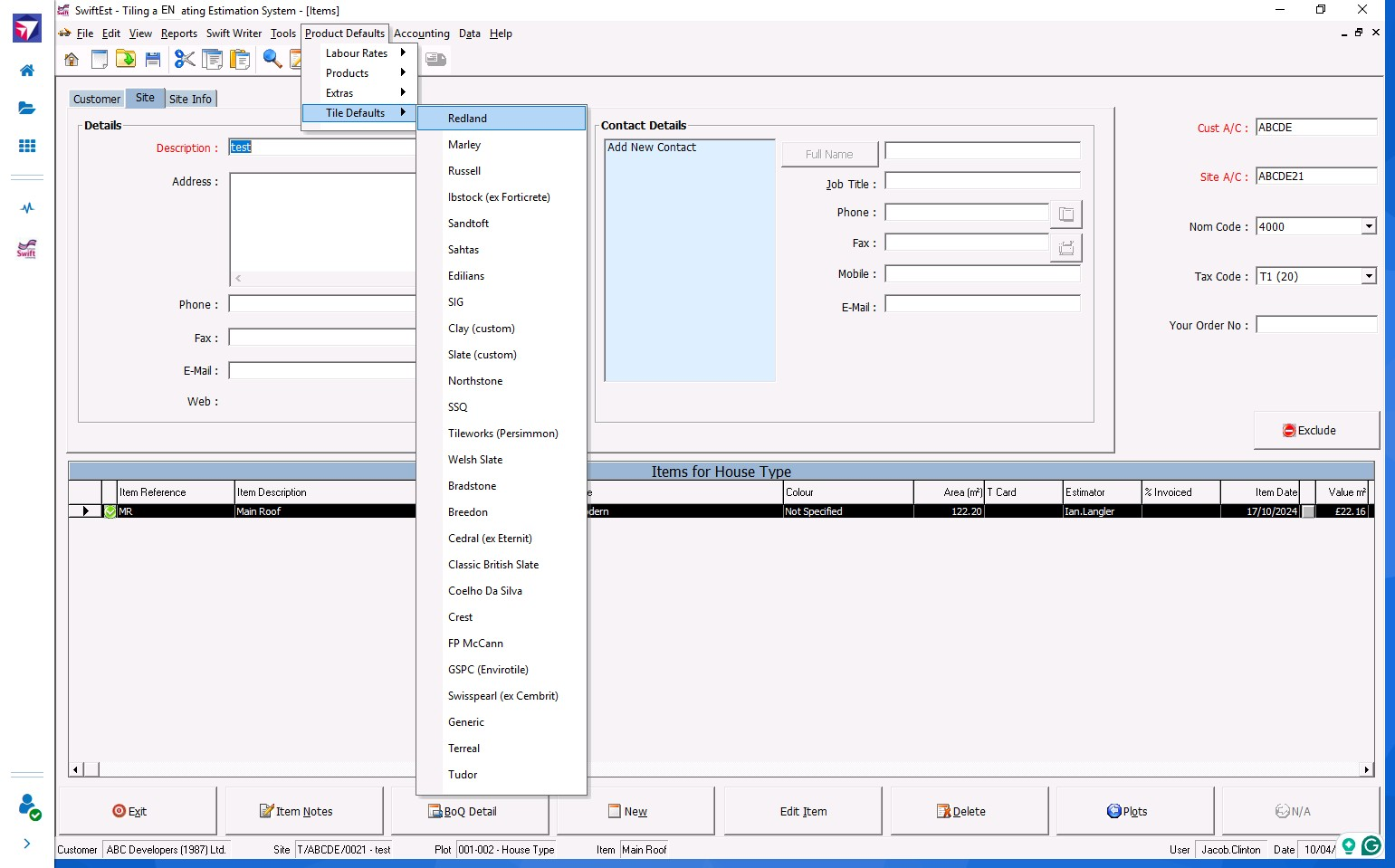 4. Then click on the Manufacturer of the tile you want to edit (i.e. Redland).
